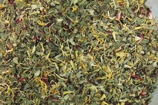Zusammensetzung: Karkade, Melisse, Verveine, Pfefferminze, Lindenblüten, Süssholz, Zitronengras, Ringelblumen