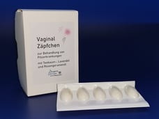 Wir empfehlen unsere pflanzlichen Vaginal Zäpchen mit Teebaum-, Lavendel- und Rosengeranienöl: