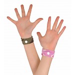 Den Knopf nach unten gerichtet auf den Nei-Kuan Punkt ausrichten. Den Vorgang für das andere Handgelenk wiederholen. Fertig. Nach ca. 10 Minuten wirken die Bänder.