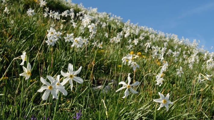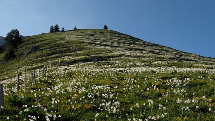 Die Gegend des Dent de Lys ist in der Zeit von ca. Mitte Mai bis und mit erster Juniwoche besonders schön, weil dann die Narzissen grossflächig blühen. Ich war am 18. Mai 2022 dort, zur besten Zeit für die Narzissenblüte.
