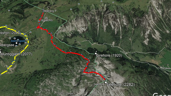 Vom grossen Parkplatz unterhalb der Alp Seeberg geht's los. Beim Alprestaurant Seeberg vorbei und hoch zum Seehorn. Auf dem gleichen weg zurück.