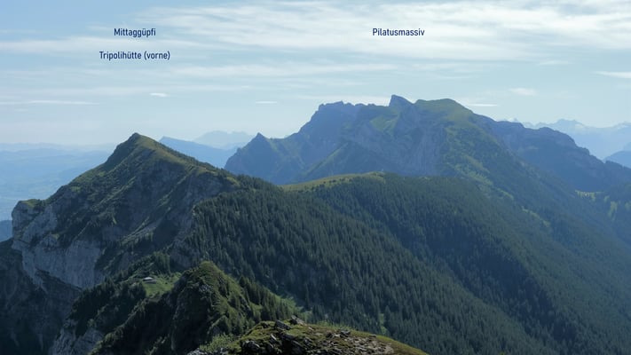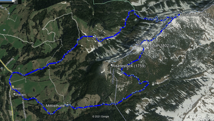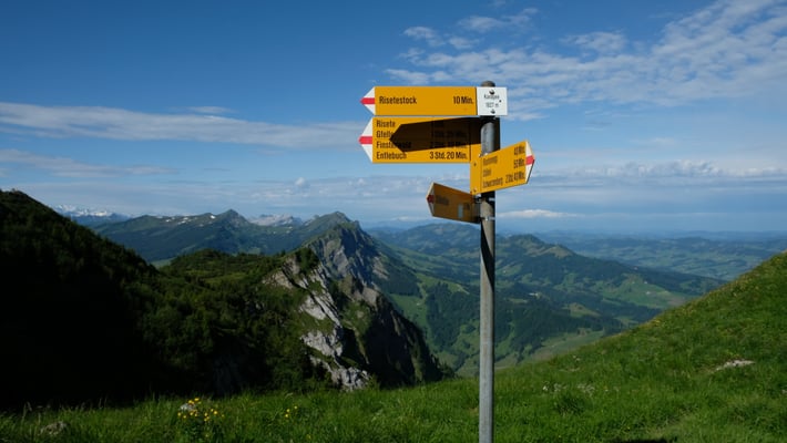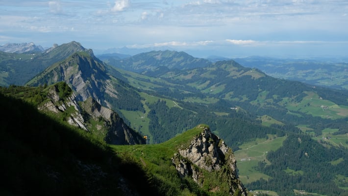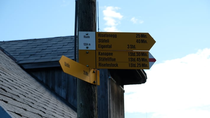 Wanderung von Gfellen auf die Stäfeliflue. Dann über die Blaue Tosse und die Mittlisthütten wieder nach Gfellen.